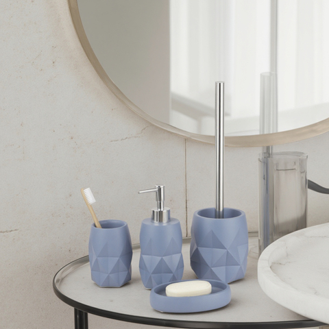 Juego de baño de Hotel azul de lujo moderno, juego de dispensador de jabón elegante de resina de 4 piezas para decoración de baño