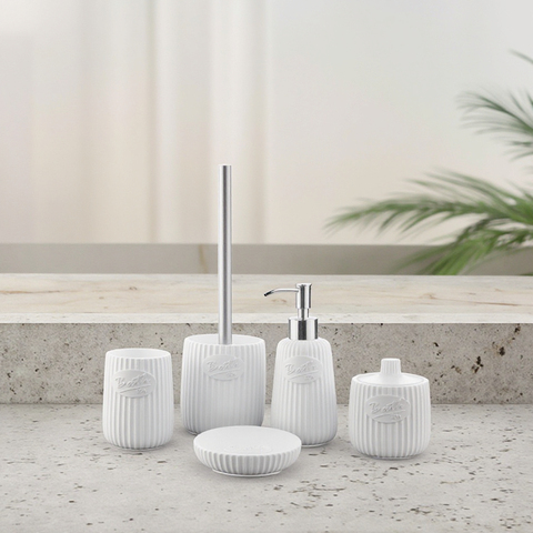Elegante y moderna decoración de baño de resina blanca, decoración de lujo para el hogar, conjunto de accesorios de baño con diseño de letras verticales ecológicas