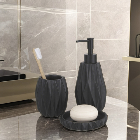 Juego de accesorios de baño para el hogar Juego de baño de resina gris Premium moderno